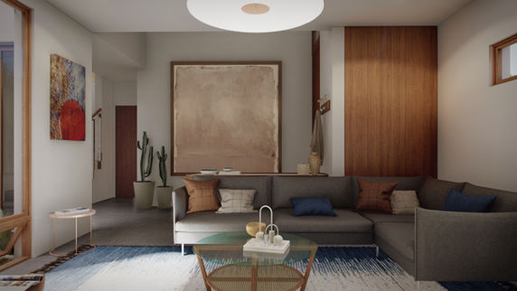 Una planta arquitectónica sencilla en la cual se proyecta un patio central que ayuda a ventilar e iluminar los espacios de manera natural y además contribuye a resolver la zonificación y relación de los distintos espacios de la vivienda.