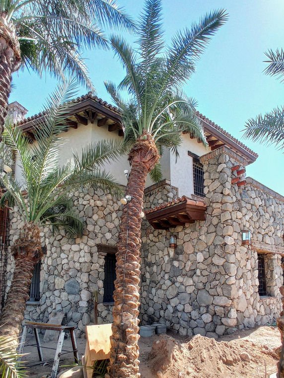 Residencia en el Valle. El proyecto se desarrolló utilizando como punto focal un gran palmar de palmeras datileras que existía en el sitio.